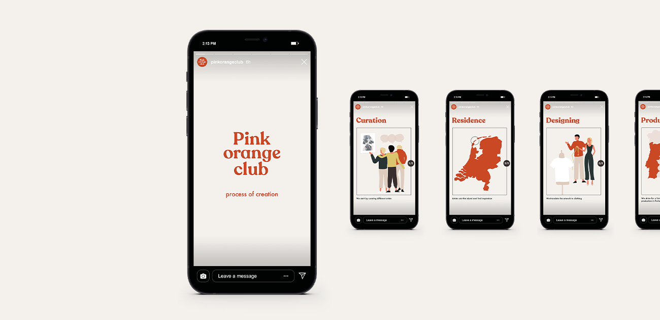 Visualisatie van het ontwikkelproces van Pinkorangeclub