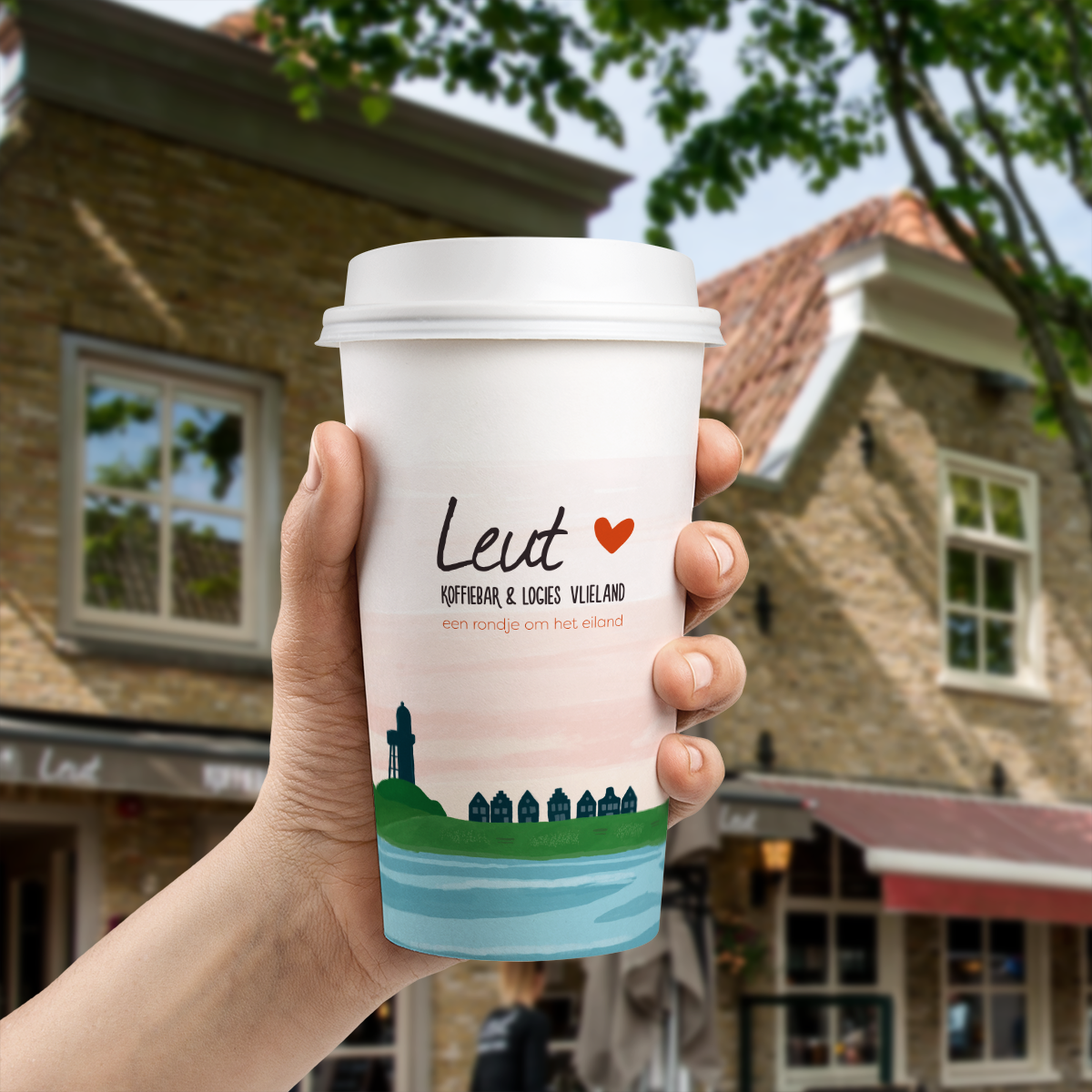 Een koffiebeker in Vlieland stijl